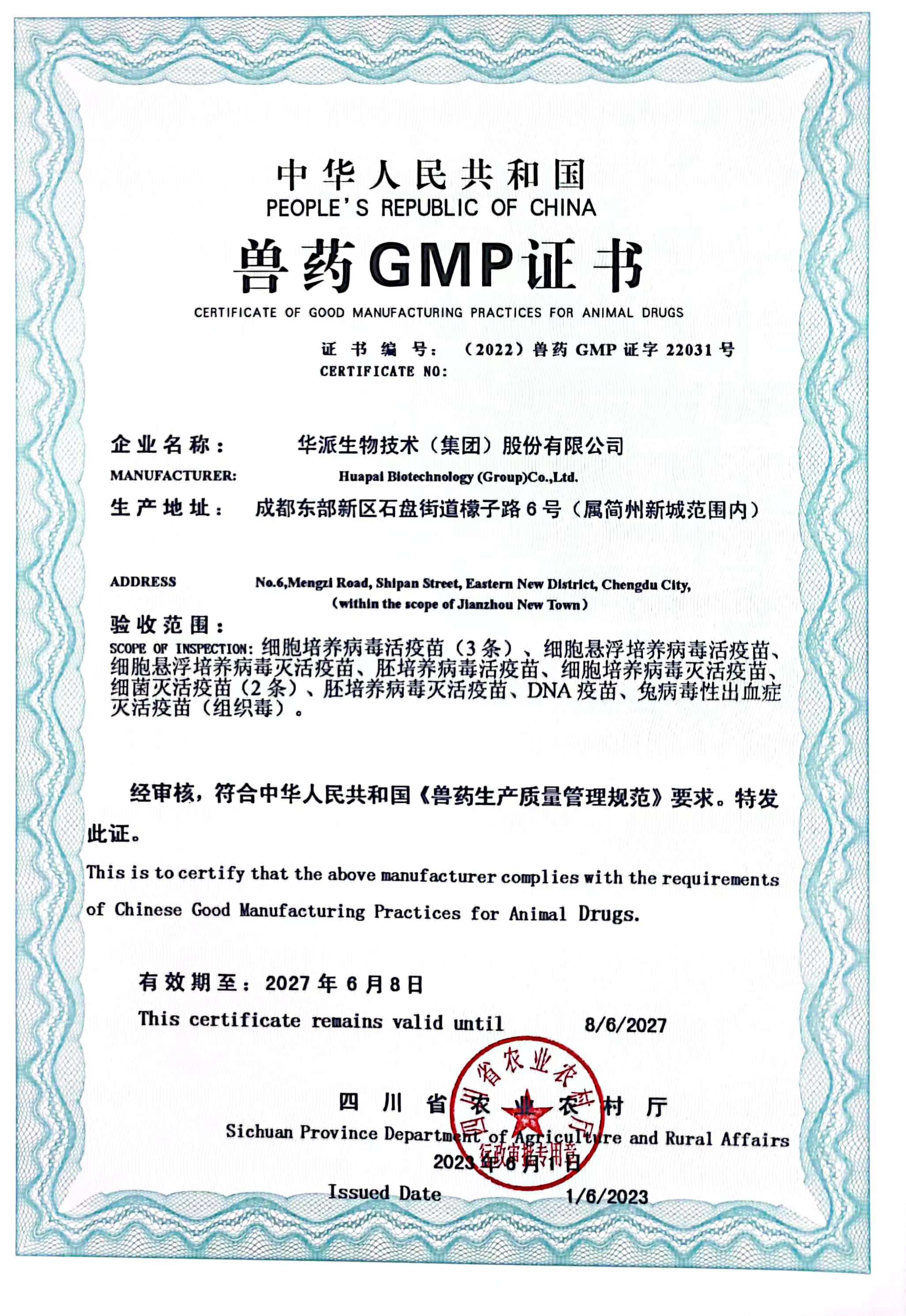 华派生物GMP证书