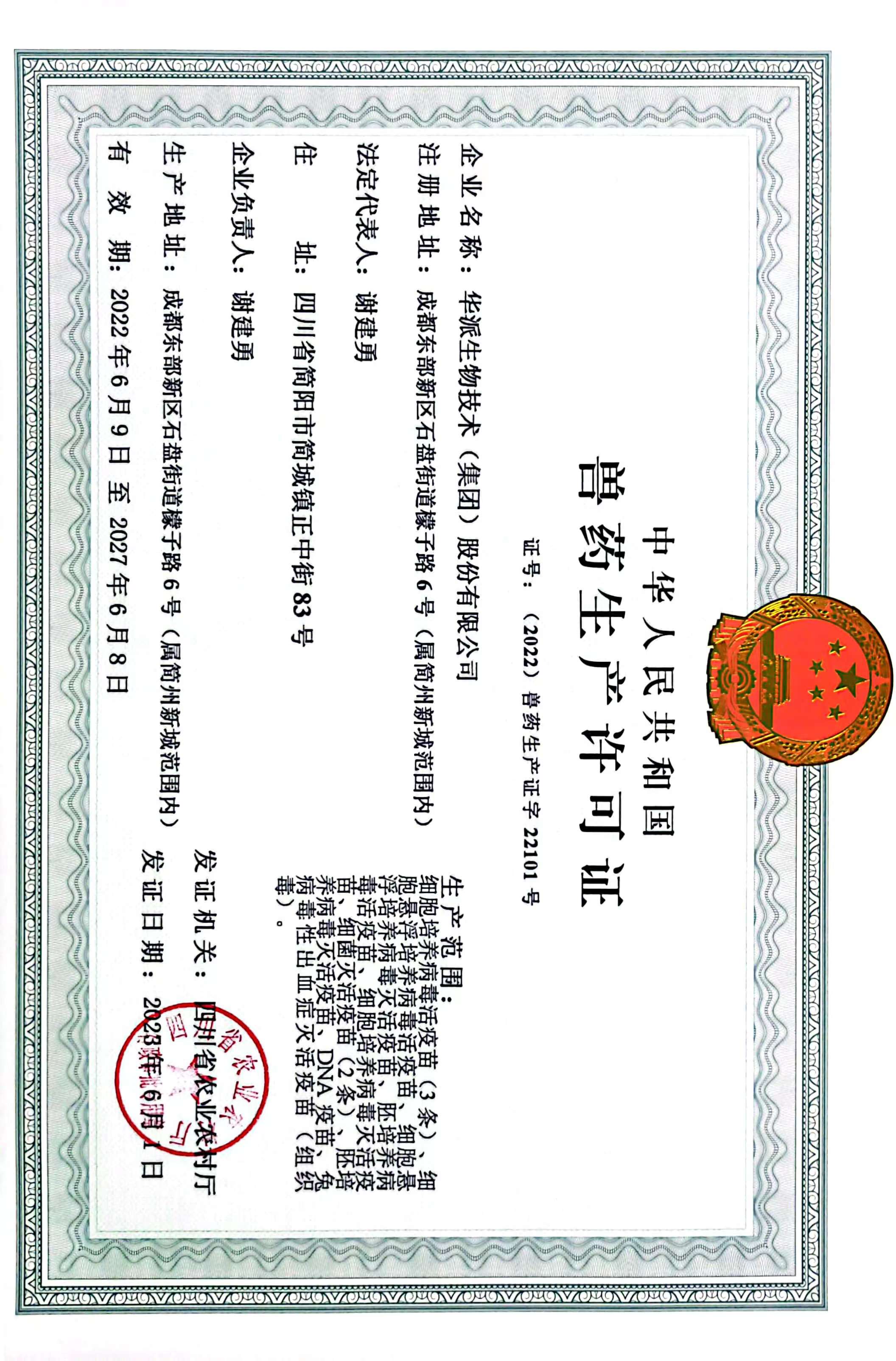 华派生物生产许可证