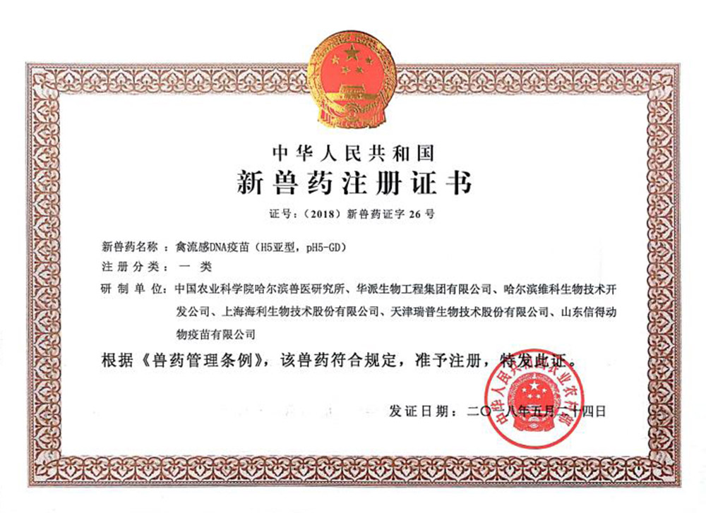 禽流感DNA疫苗(H5亚型,pH5-GD)