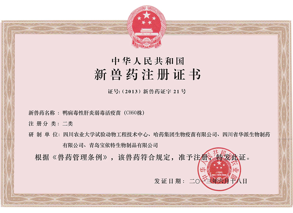 鸭病毒性肝炎弱毒活疫苗(CH60株)