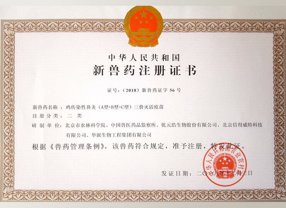 鸡传染性鼻炎(A型+B型+C型)三价灭活疫苗