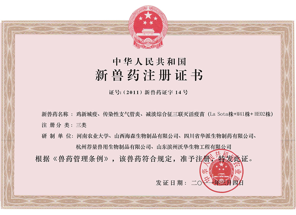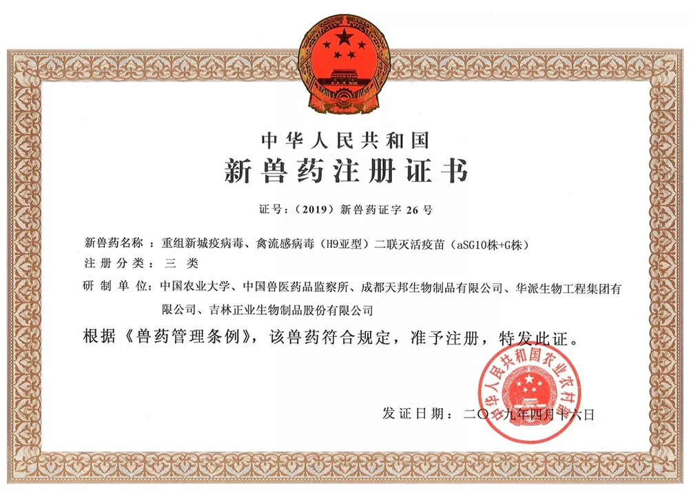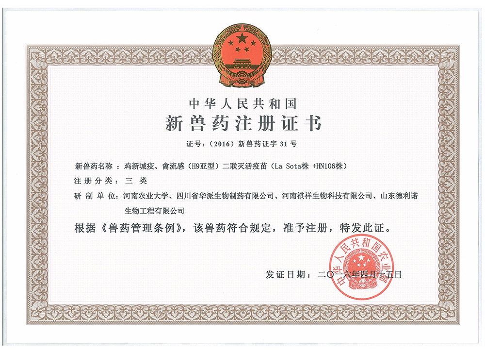 鸡新城疫、禽流感(H9亚型)二联灭活疫苗(La Sota株+HN106株)