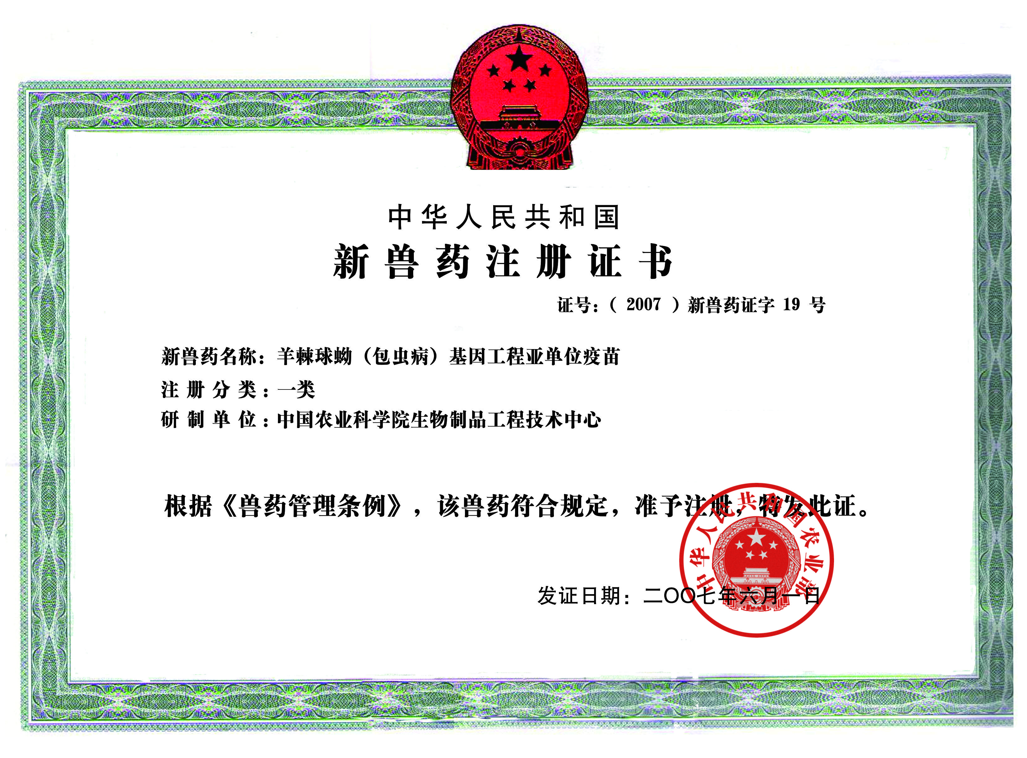 羊棘球蚴(包虫病)基因工程亚单位疫苗