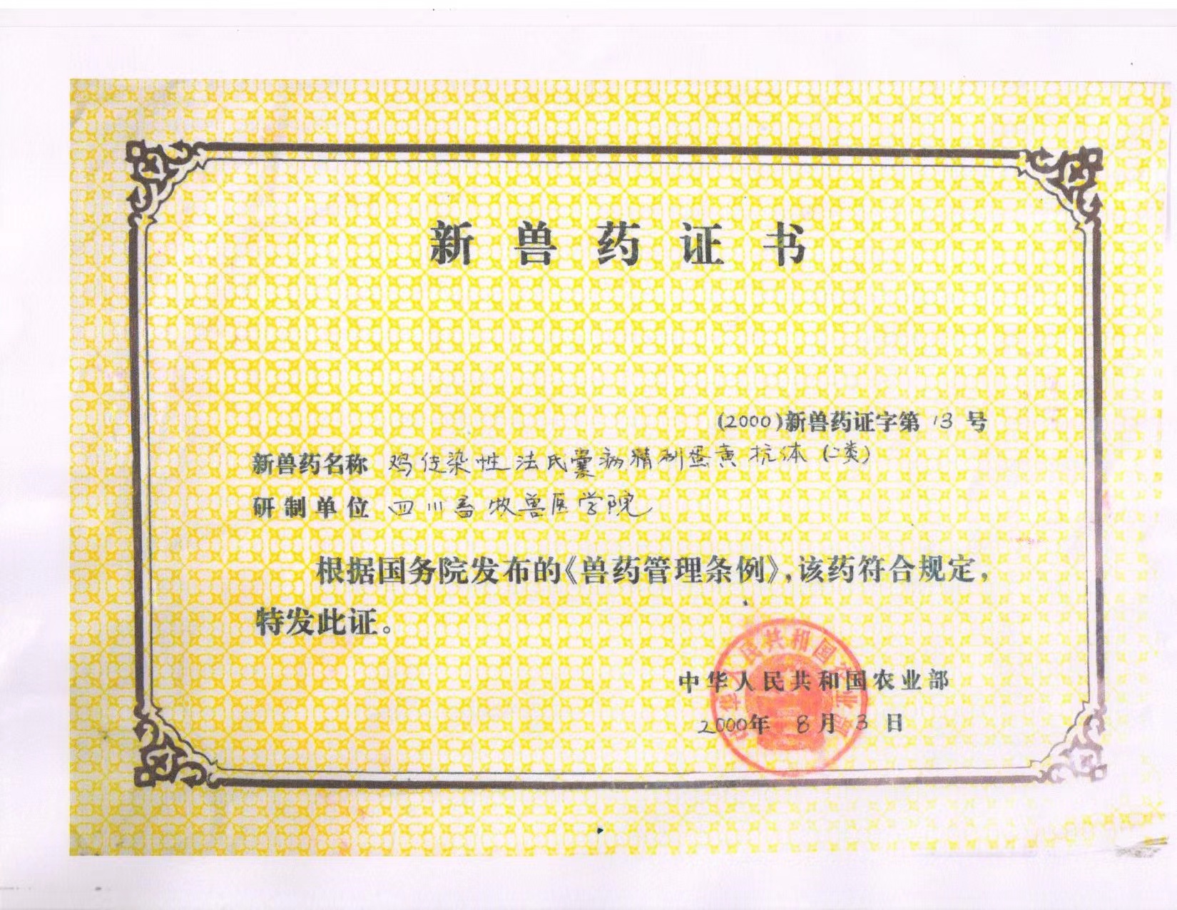 鸡传染性法氏囊病免疫复合物疫苗(CF株)