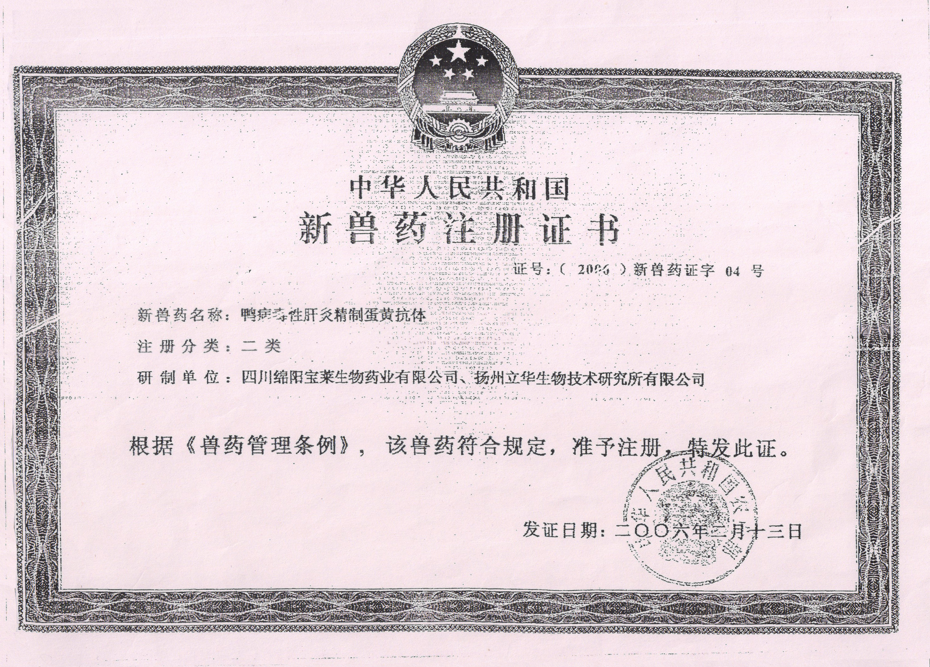 鸭病毒性肝炎精制蛋黄抗体